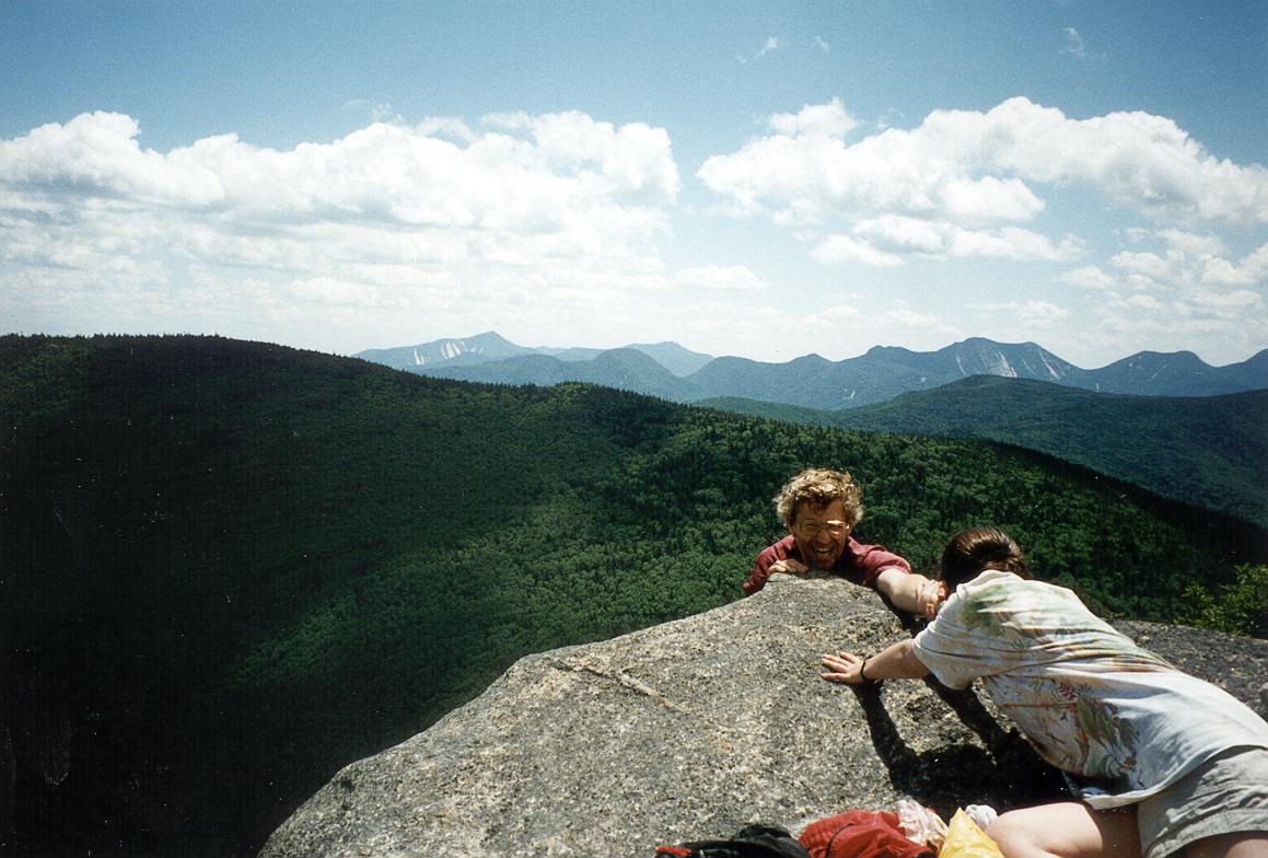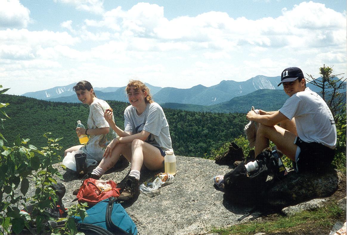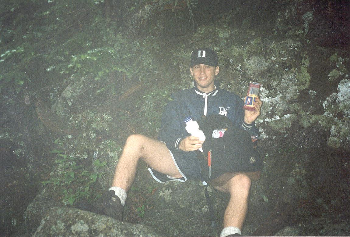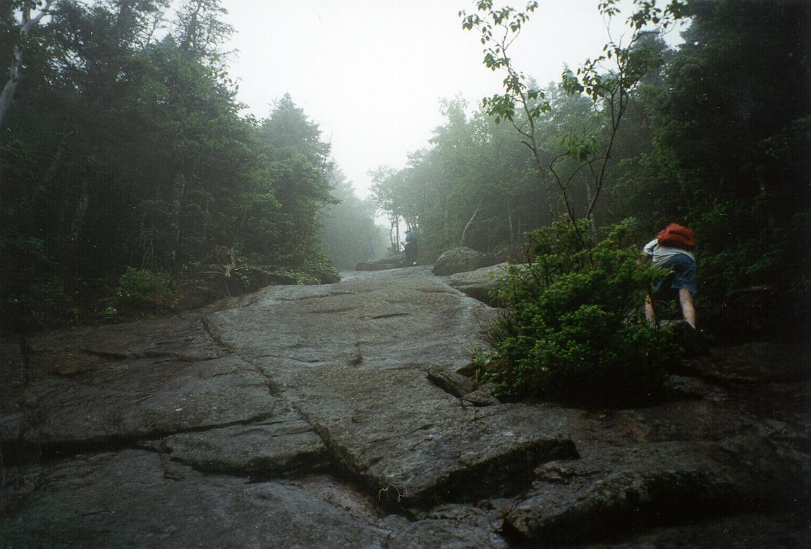 We went down the far side of Algonquin and ate lunch in the pouring rain. Joe was proud of the nice rock chair he found to rest upon between shivers |