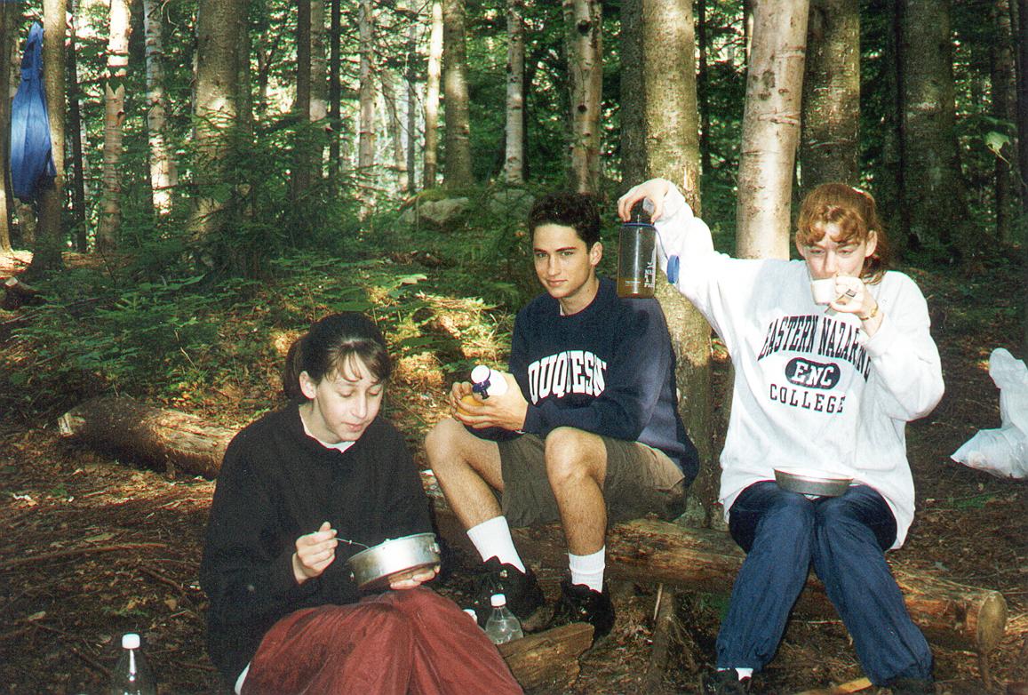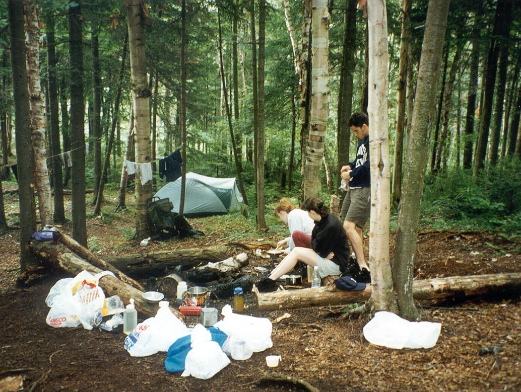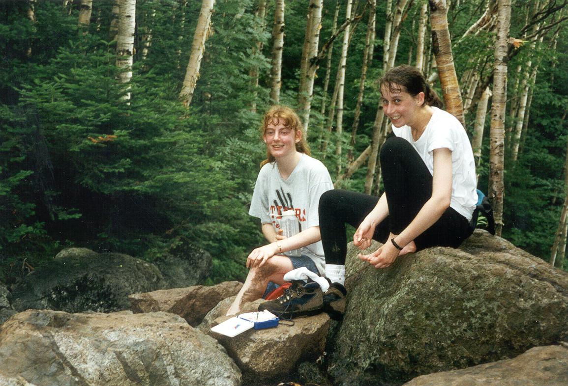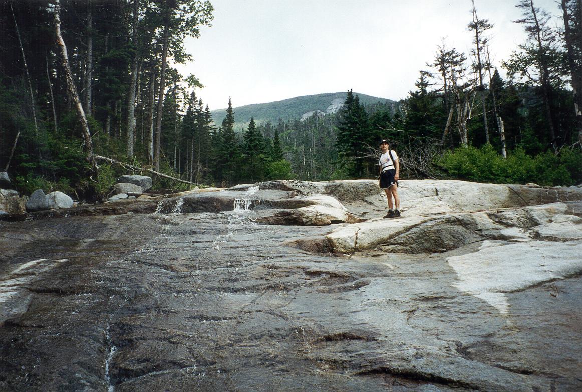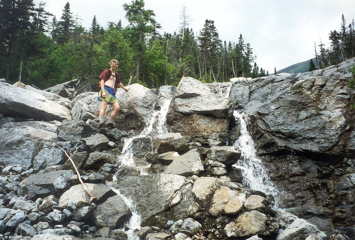We went down the far side of Algonquin and ate lunch in the pouring rain. Joe was proud of the nice rock chair he found to rest upon between shivers |