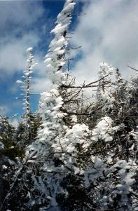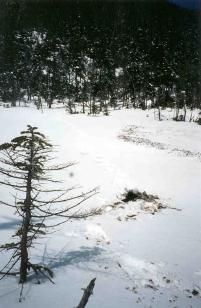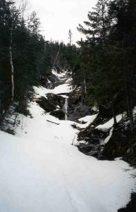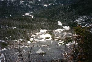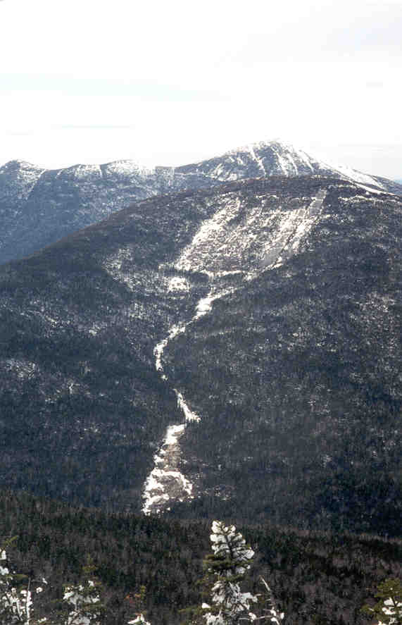 NE Colden slide from Gray Peak. I descended straight toward the slide. Tree-holes and mini-avalanches a constant danger. |