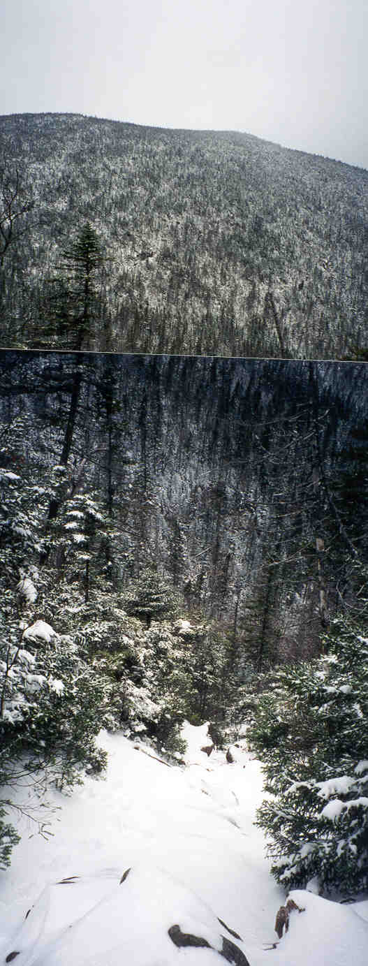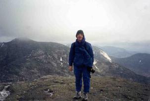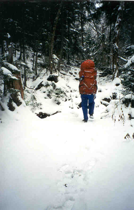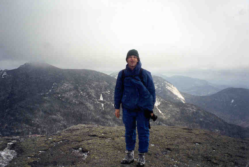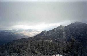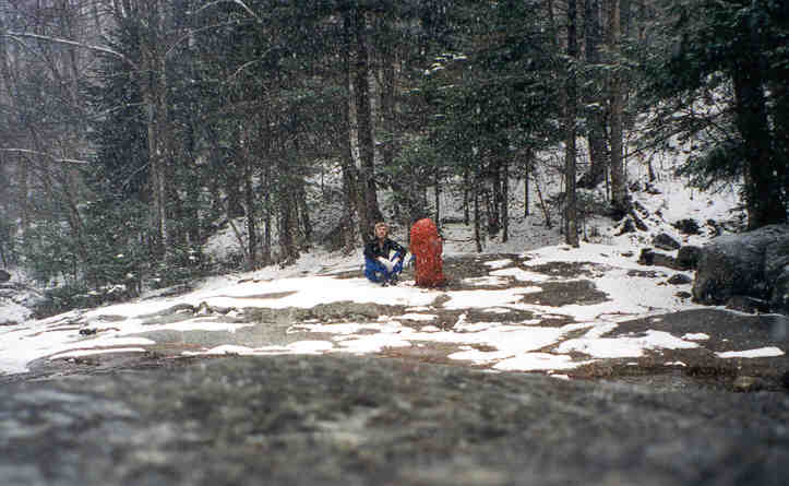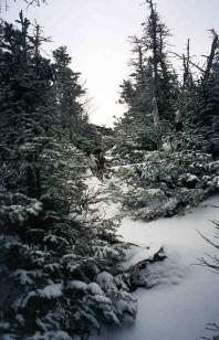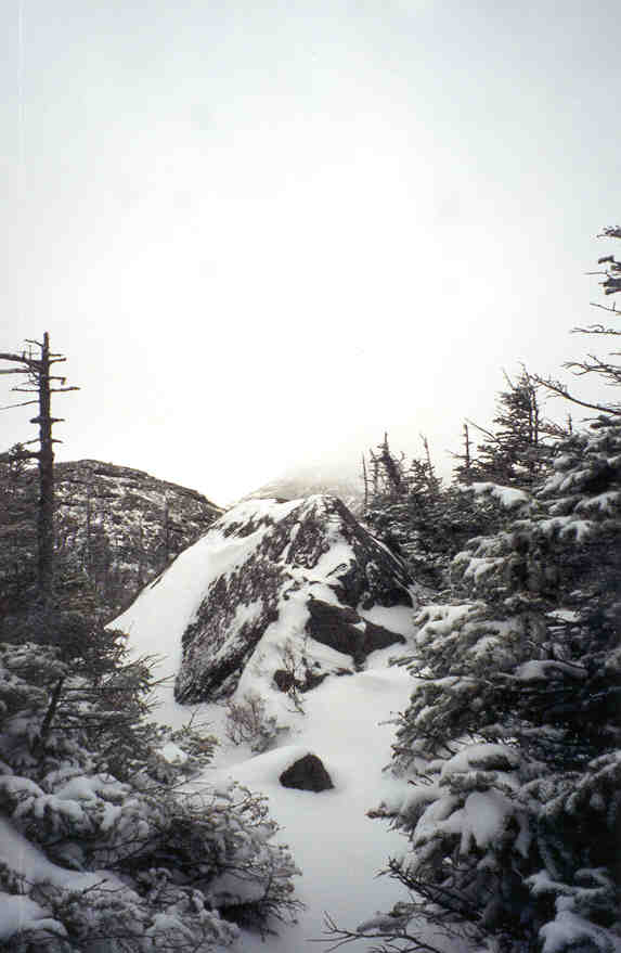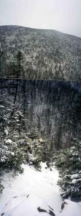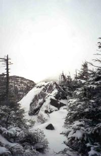 The wind on little haystack was strong enough that I was blown over a crevice. It was blowing snowballs out of Panther gorge. |