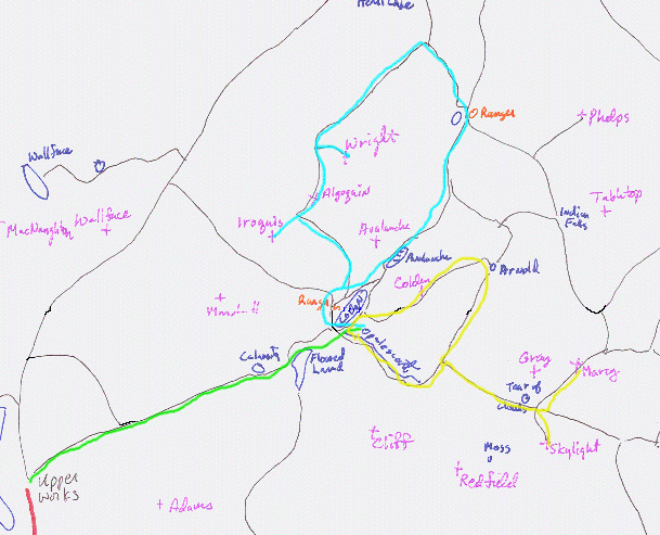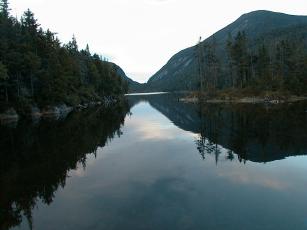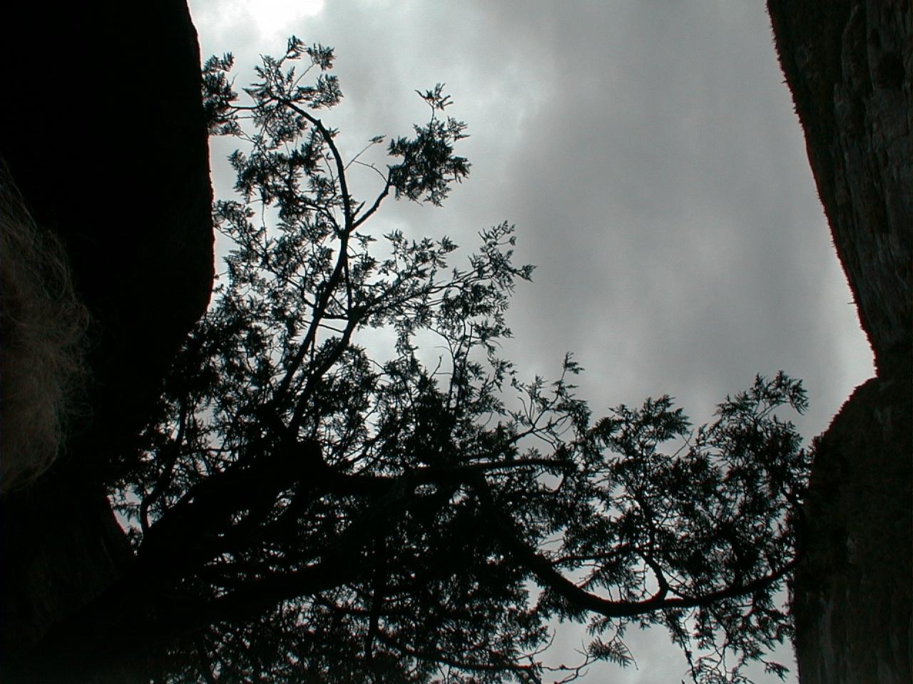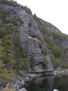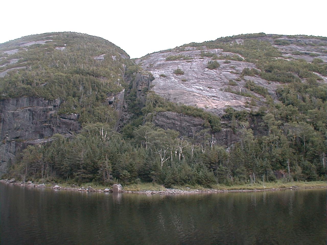 Avalanche mountain overhang and the top of Colden visible in a straight up shot. |