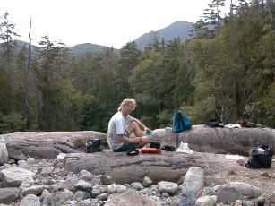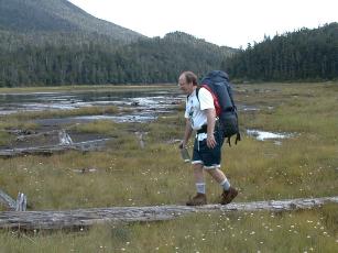 It was dry, so we took a bear scree full short cut across flowed land. |