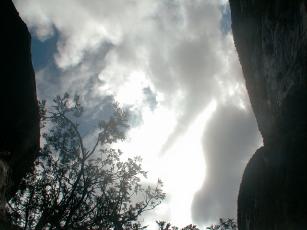 Straight up view shows Colden on right, Avalanche mountain on the left |