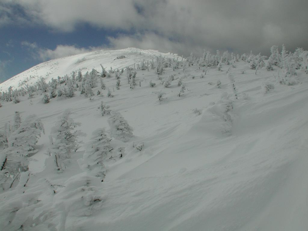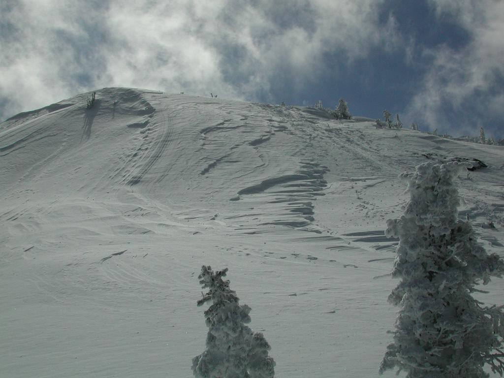 View of Bondary; the wid was so strong I had to hang onto my ice axe during gusts.
