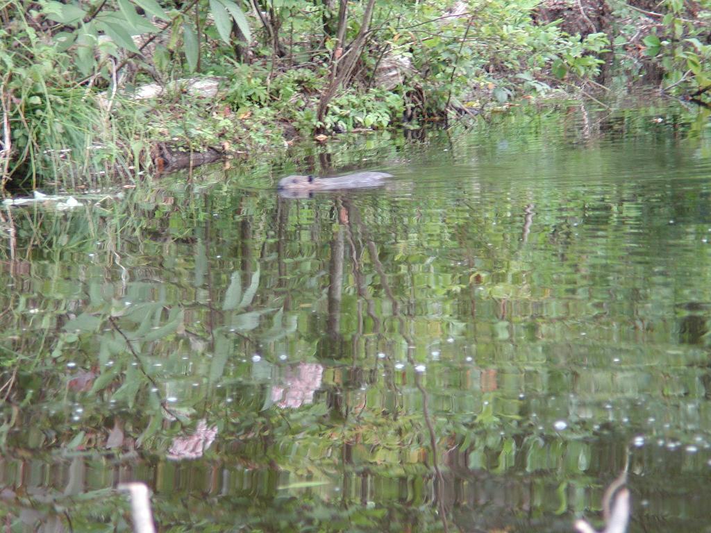 at dusk we visited an active beaver pond and watched the beavers swim |