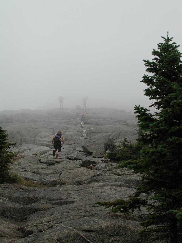 disappearing into the clouds as we reach open rock |