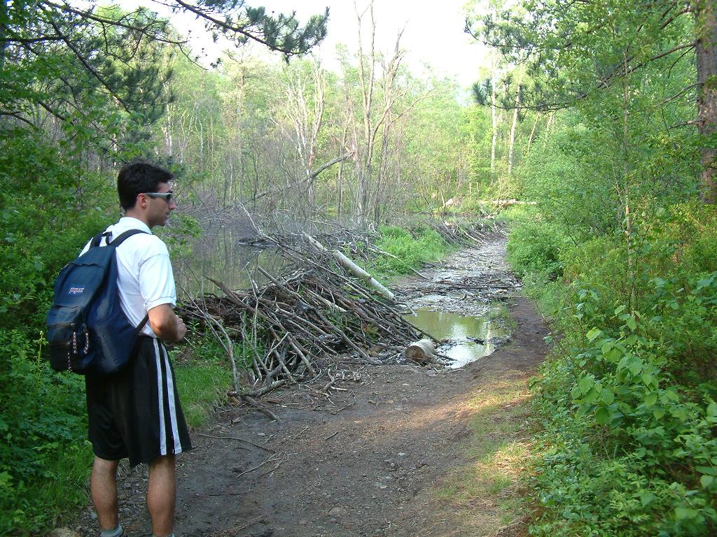 an amazing trailside beaver dam |