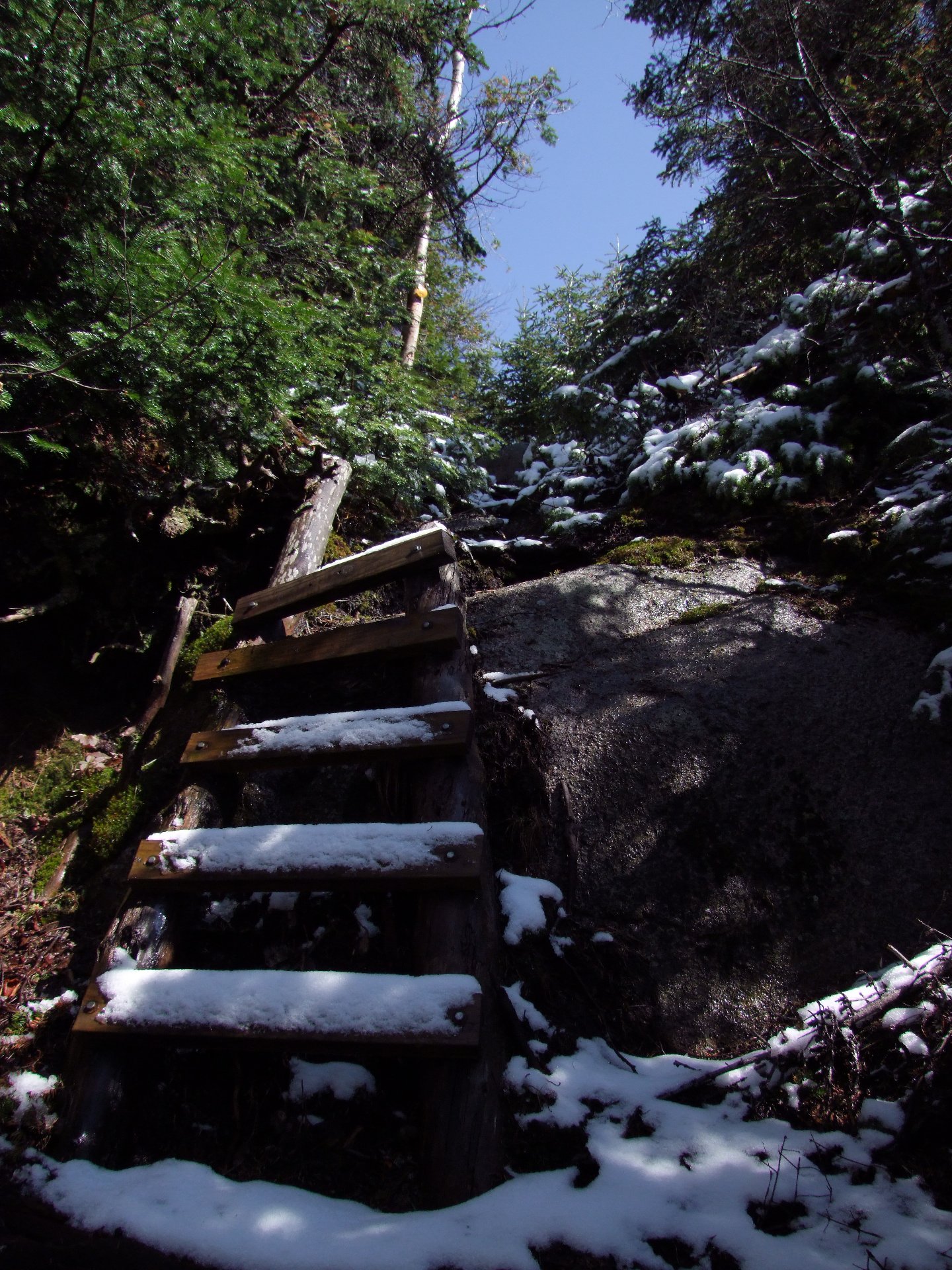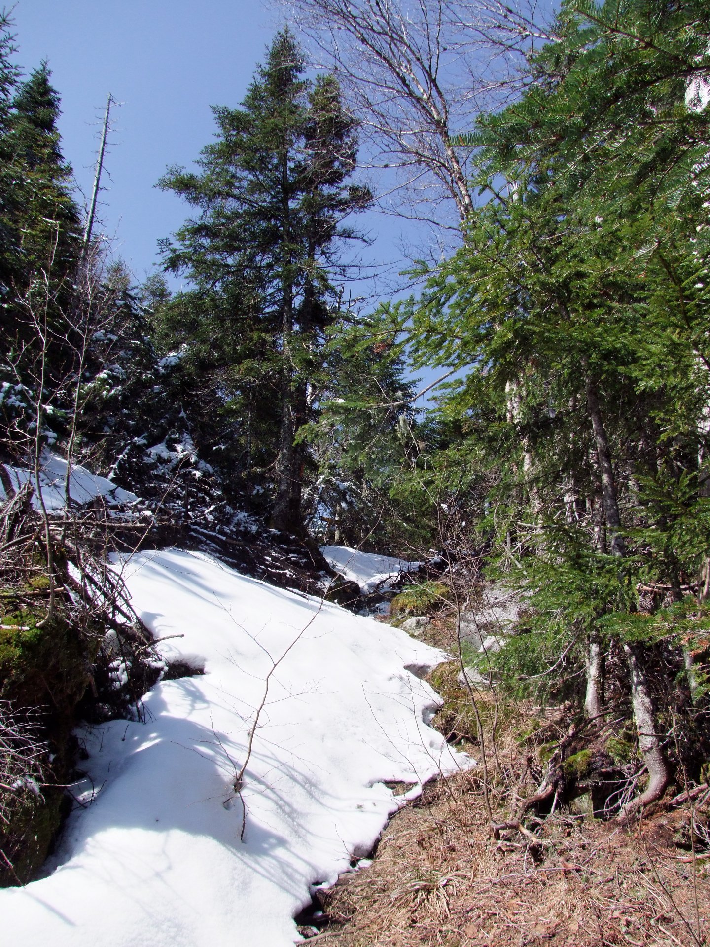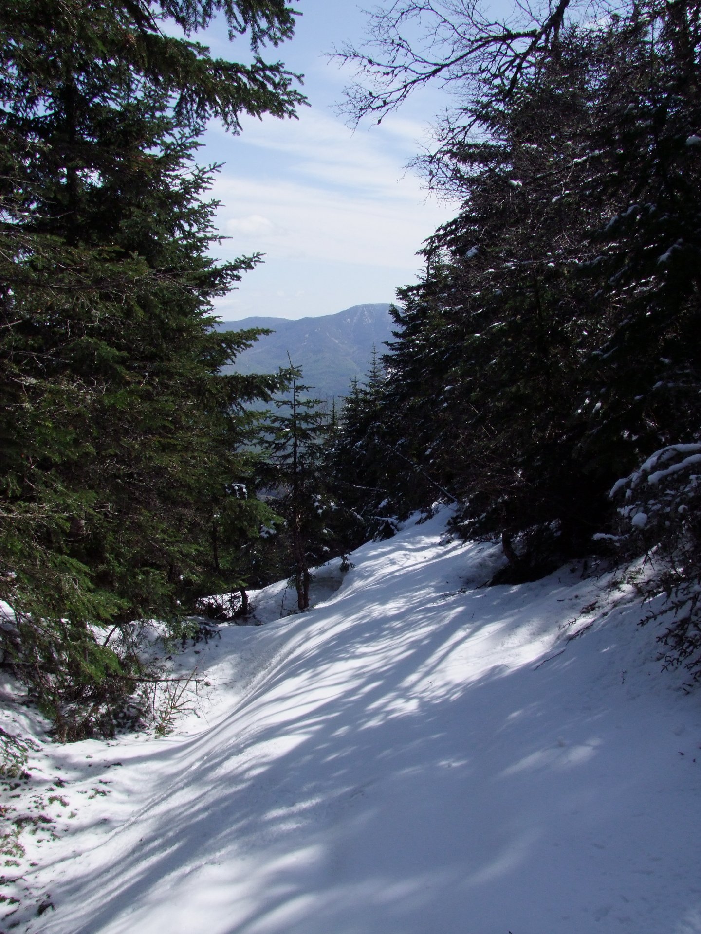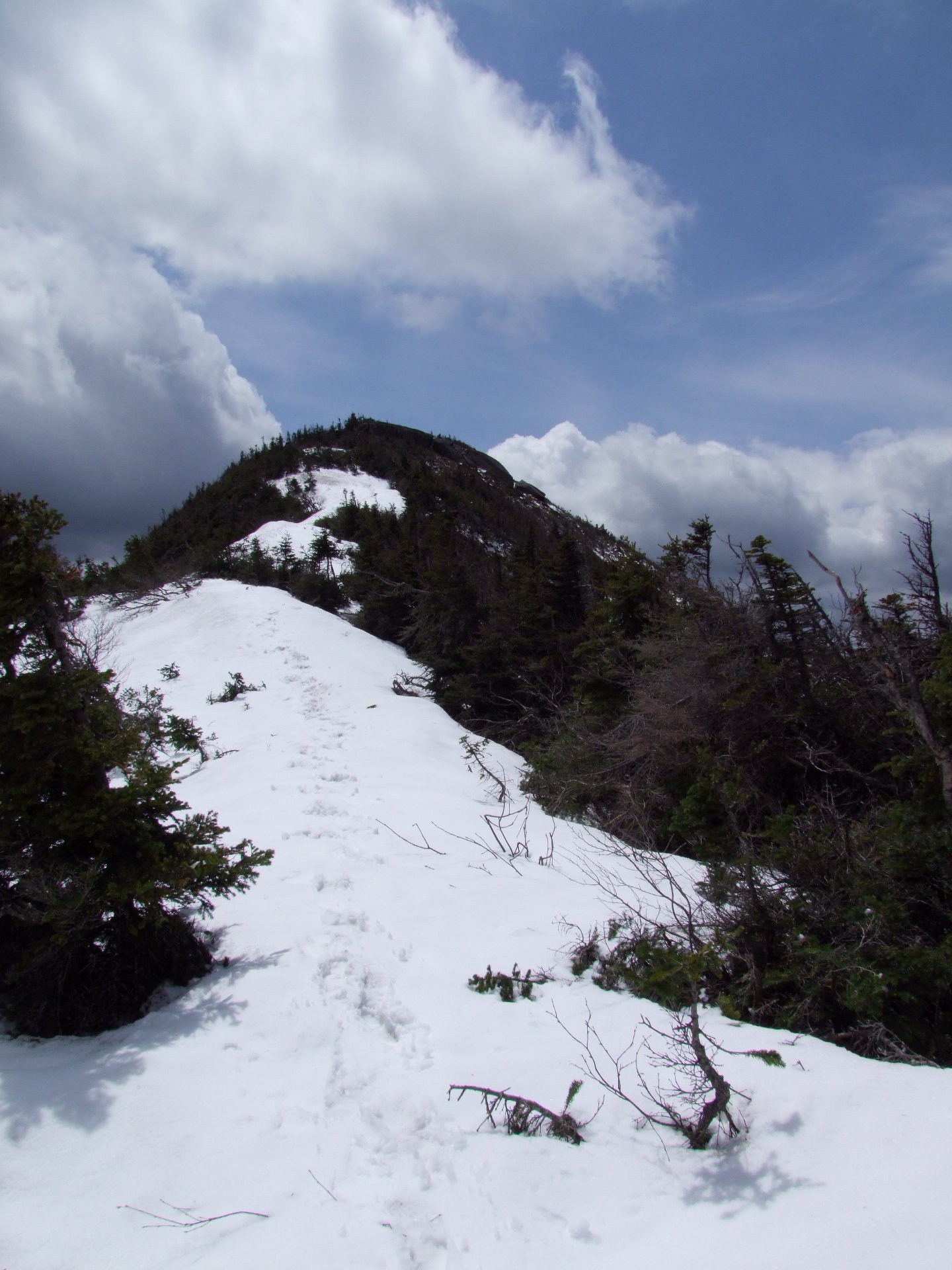 reaching new (to me) views of Upper Wolfjaw on the descent back toward St Huberts |