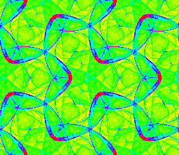 An attractor with symmetry group p31m evolving to p3 and then to to p3m1.