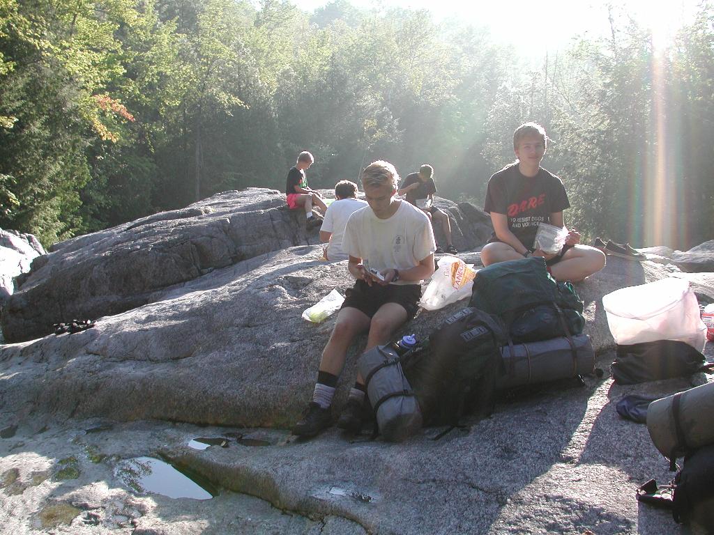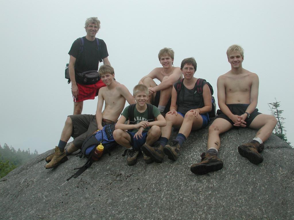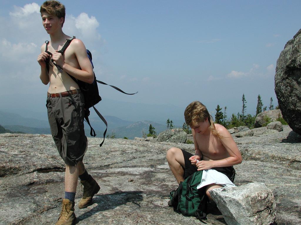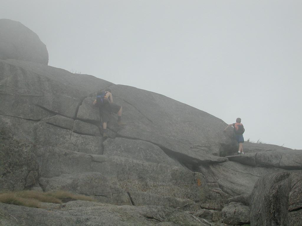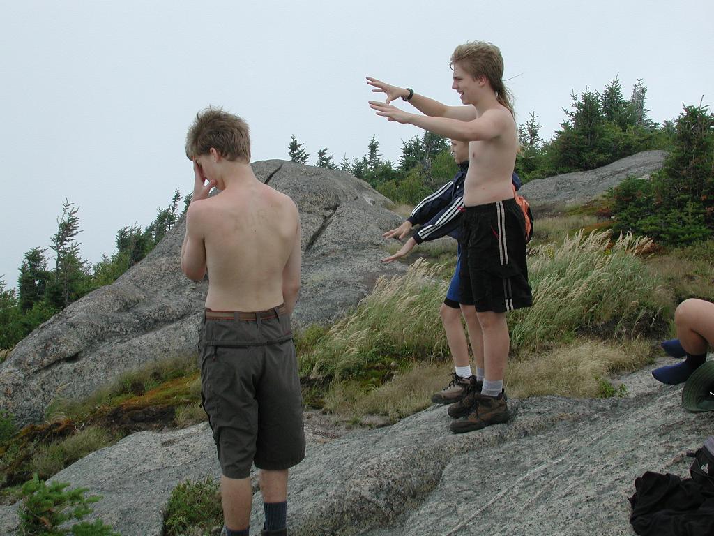strong wind on Blueberry mountain; by this point, we haven't seen Ben for a couple hours and are getting nervous about where he is |
