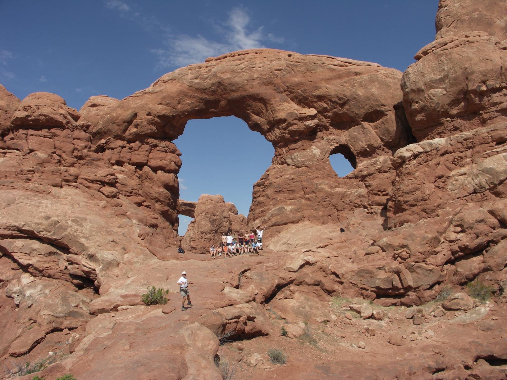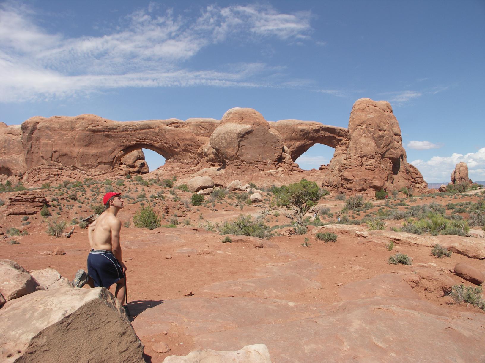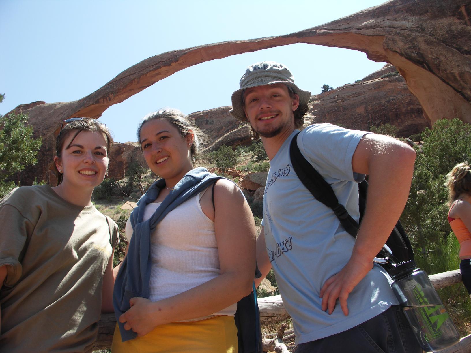 posing in front of landscape arch |