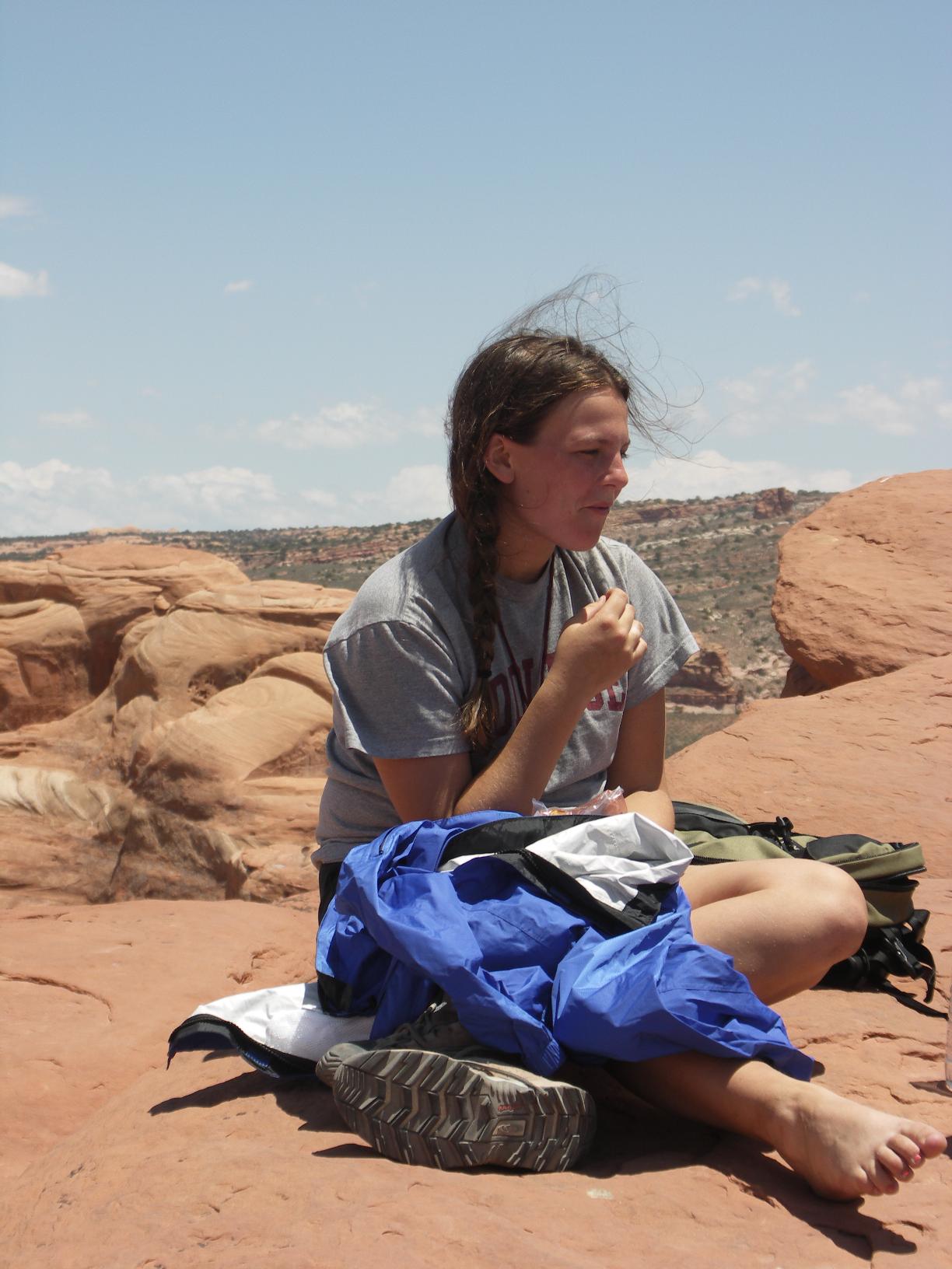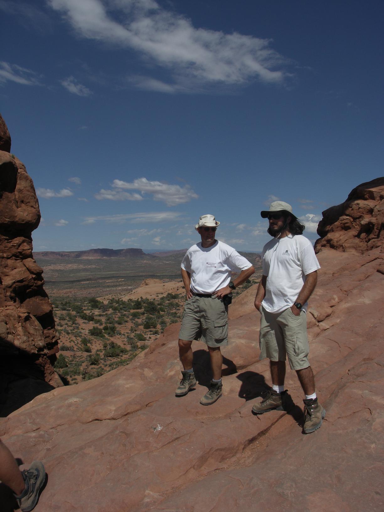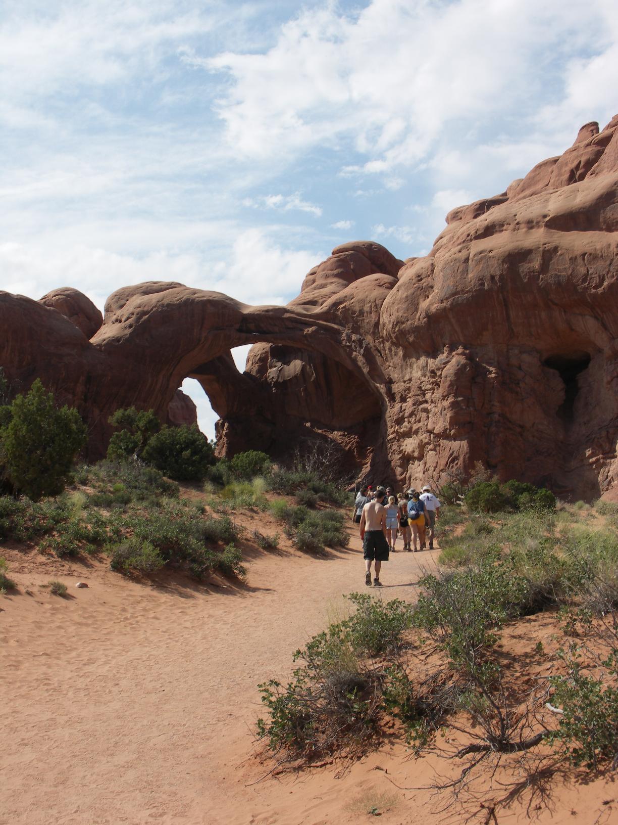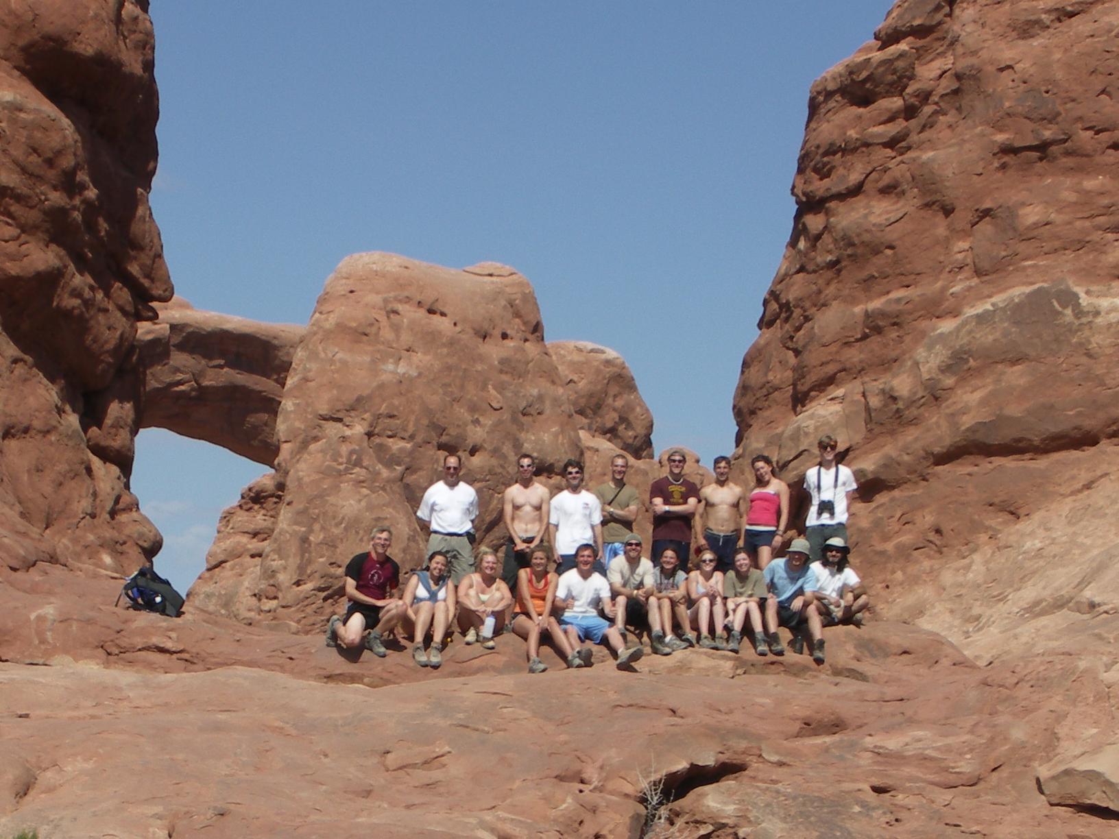 posing in front of landscape arch |
