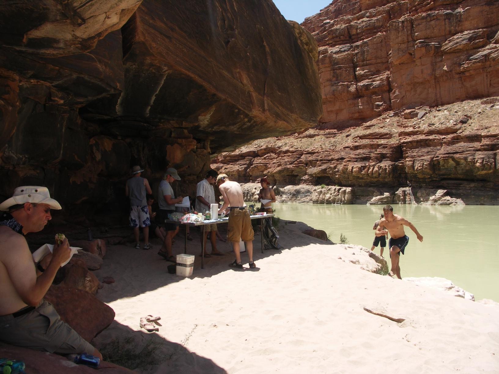 we enjoy lunch in the shade of an overhang |